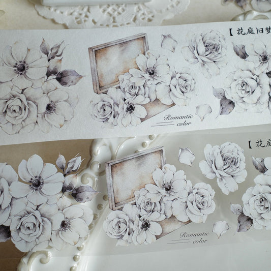 White Rose Vintage Big Flower Washi Tape PET