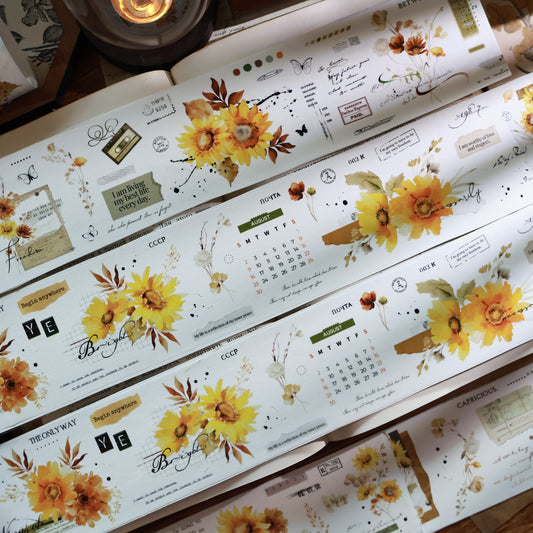 Yellow Thorn Rose vintage big flower PET and Washi tape