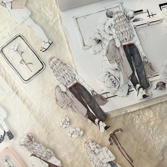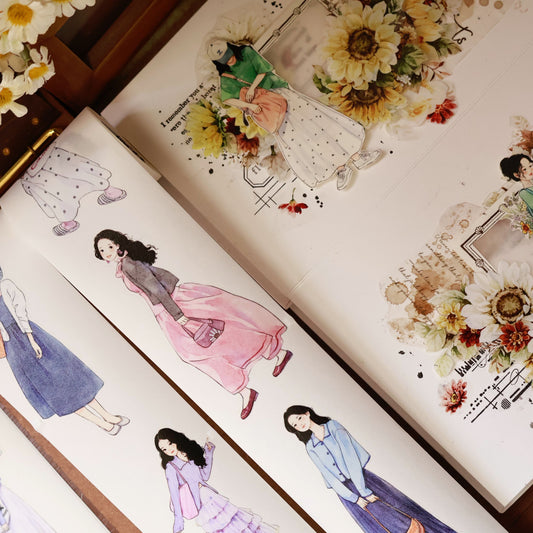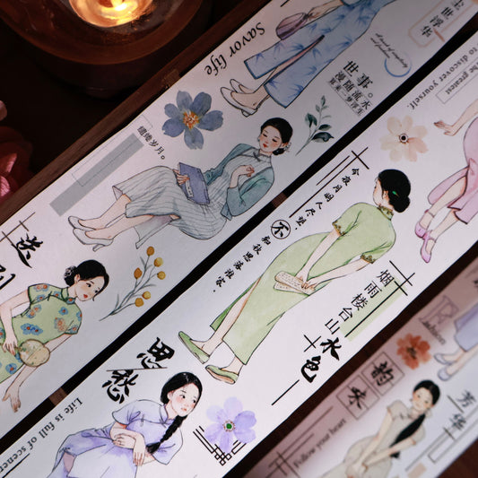 Ancient style cheongsam girl character Retro PET and Washi Paper Tape