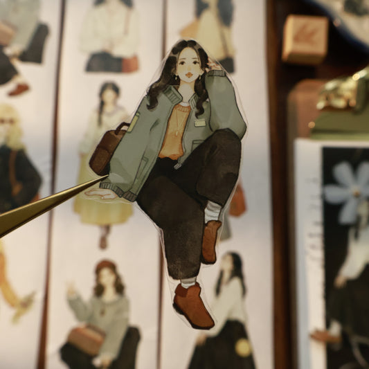 Light Retro Girl Character Washi Tape PET