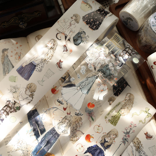 Floral maider character Retro PET and Washi Paper Tape