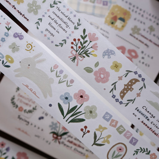 Rabbit Flower Story Collection Masking Tape | Cute PET / Washi Tape