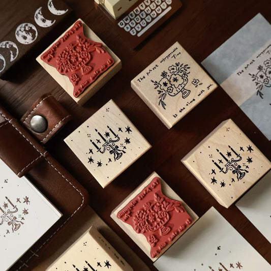 Maple upgraded Candlesticks and Bouquets Stamp base Retro Wooden Notebook Rubber Stamp