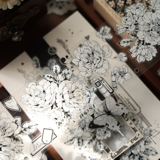 Black and white flowers vintage flower PET and Washi tape