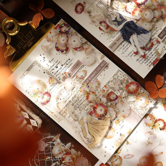Morning glory vintage flower PET and Washi tape