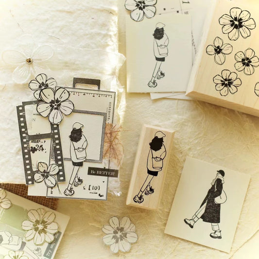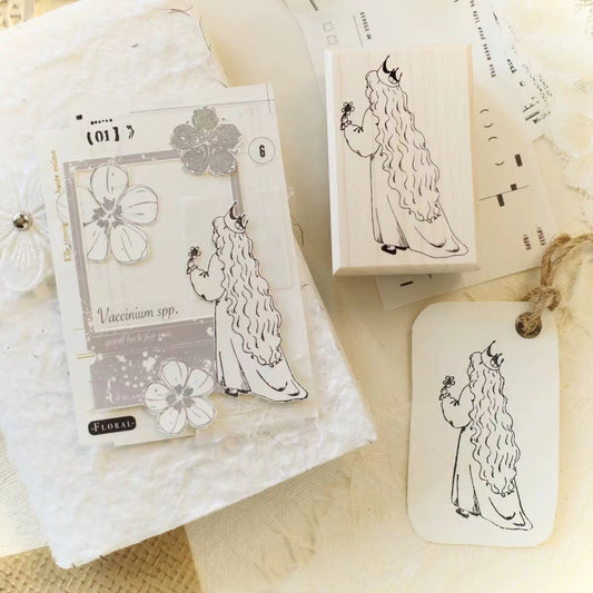Maple upgraded Bread Girls Stamp base Retro Wooden Notebook Rubber Stamp