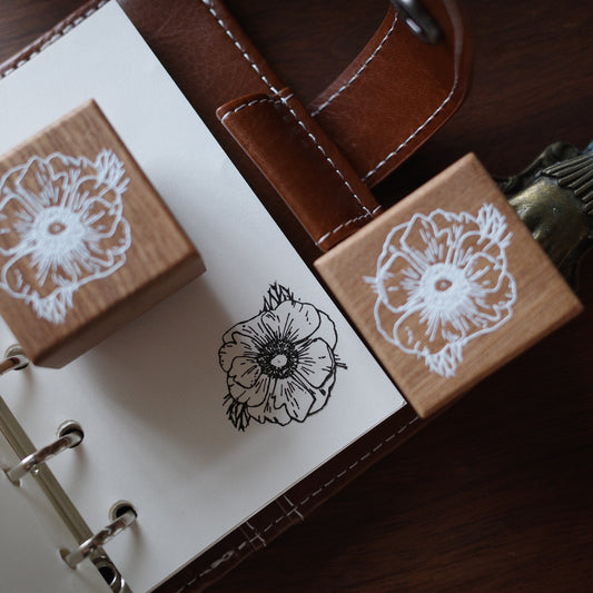 Anemone Flower Light Retro Floral Wooden Notebook Rubber Stamp