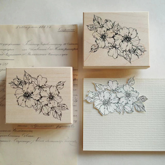 Vintage Floral Postmark Stamp Wood Rubber Stamp