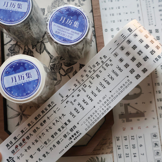 Monthly calendar set Light retro base tape handbook material PET washi tape