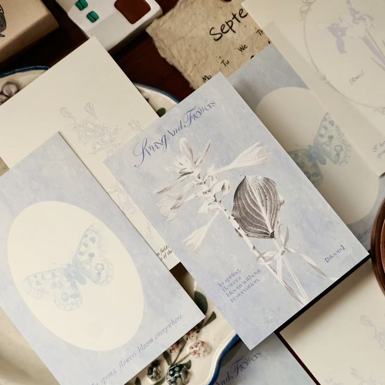 Blue mark and Plain flower flying butterfly theme light retro M5 series double-sided printing for dual-use sticky notes