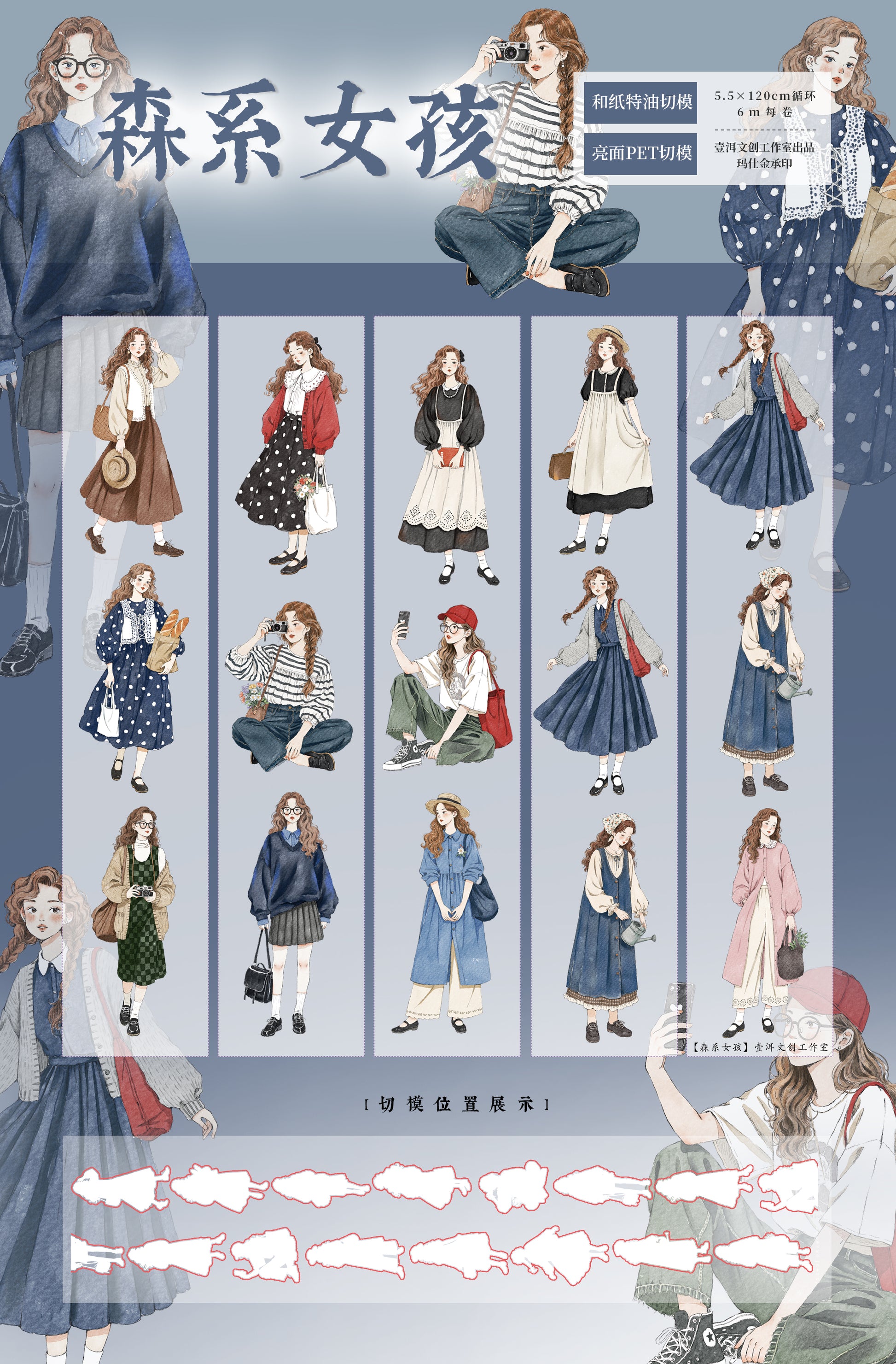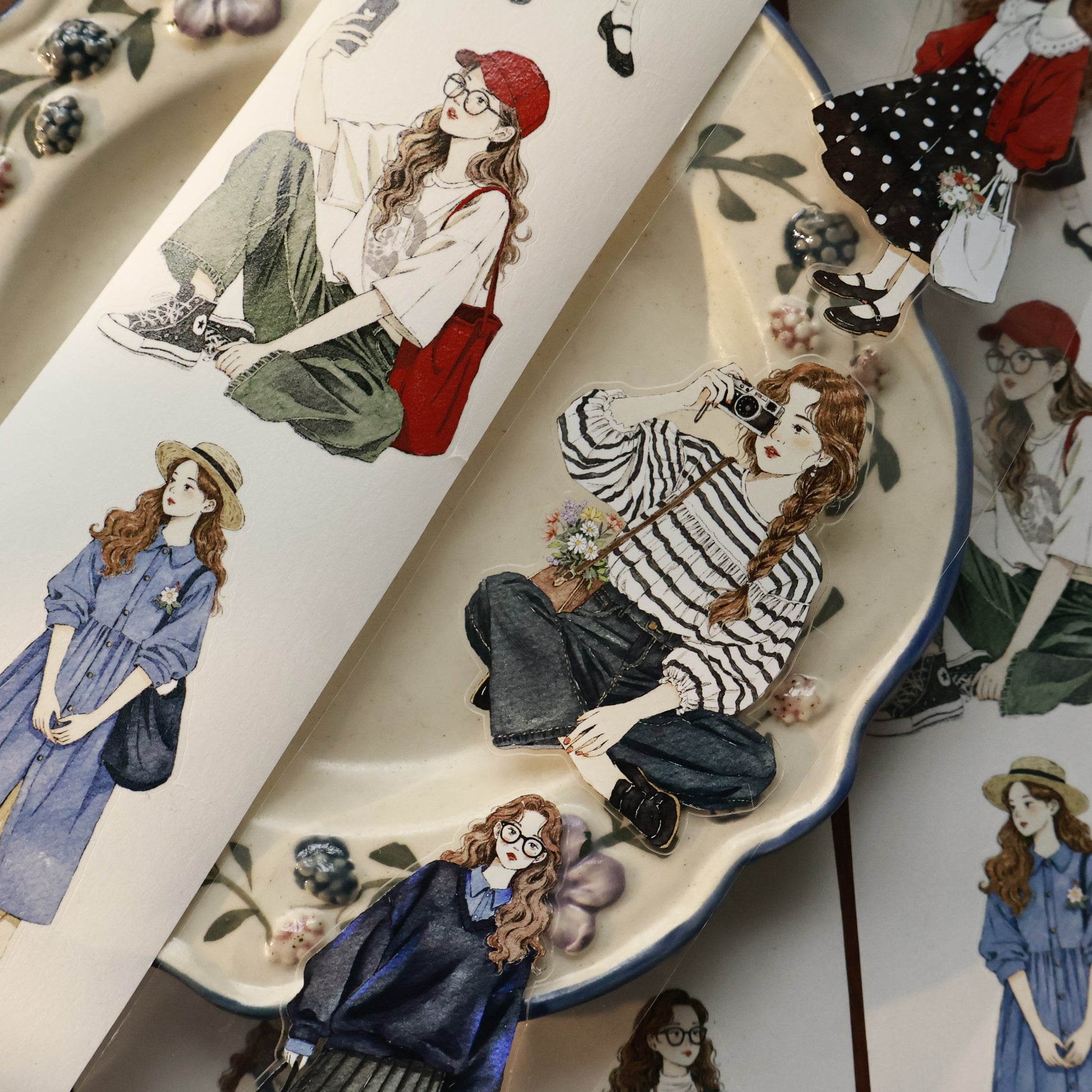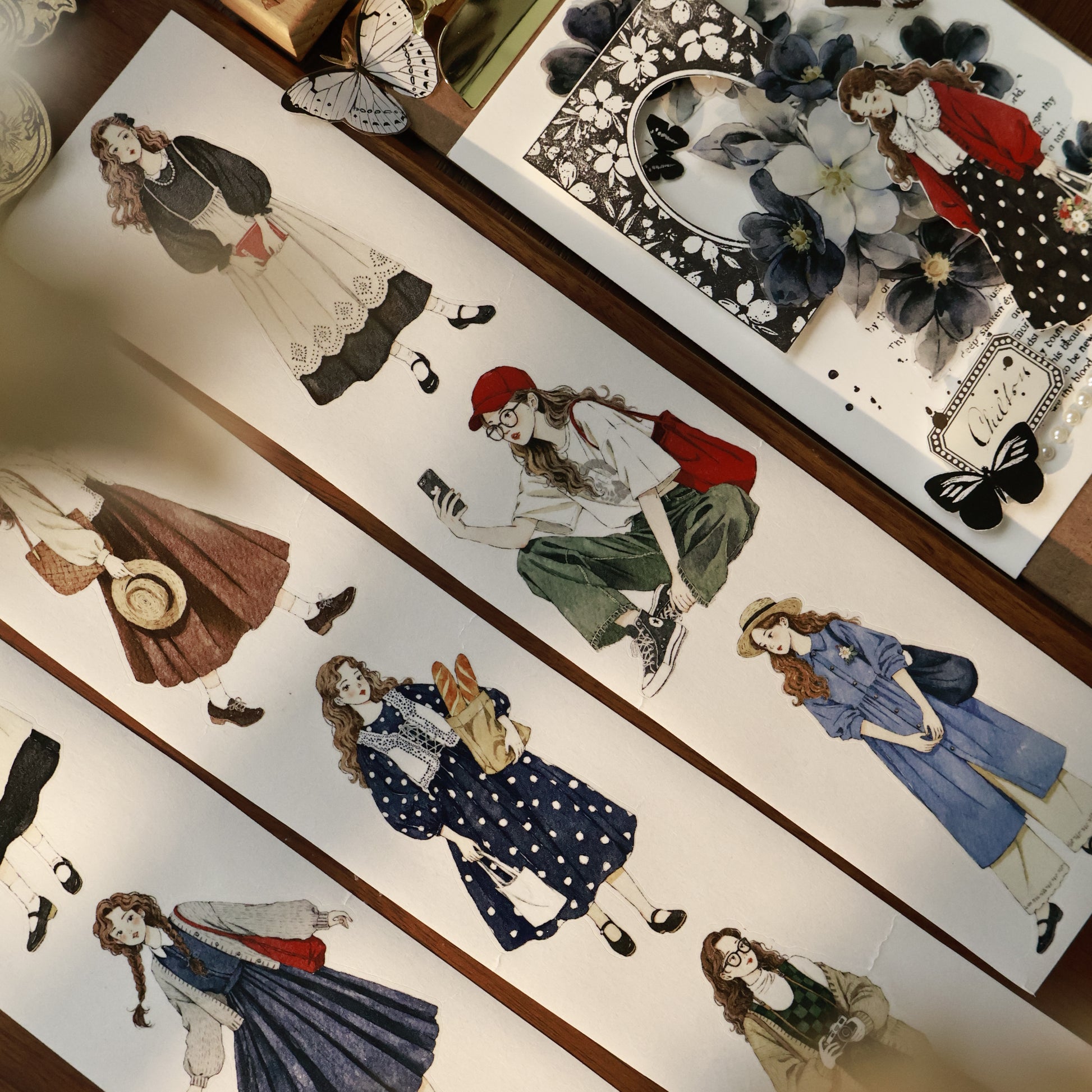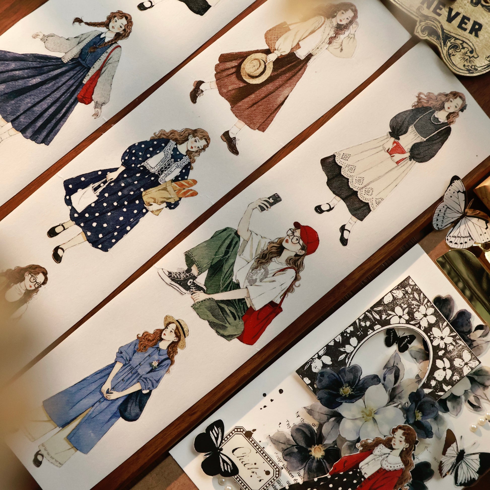 Forest girl character Retro PET and Washi Paper Tape, the girls with warm heart, every girl has her own look, confident and beautiful, they all enjoy their daily life, bringing a different feeling to your creations. . Whether you want to liven up a journal, embellish a planner, or add flair to your crafts, these words and patterns will spread joy.