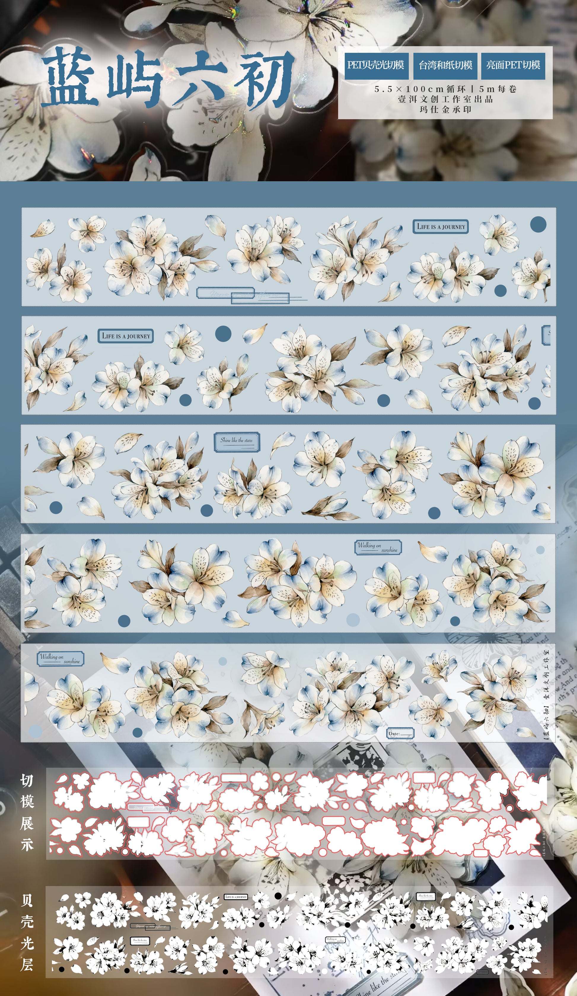 Lanyu No. 6 vintage flower PET and Washi tape