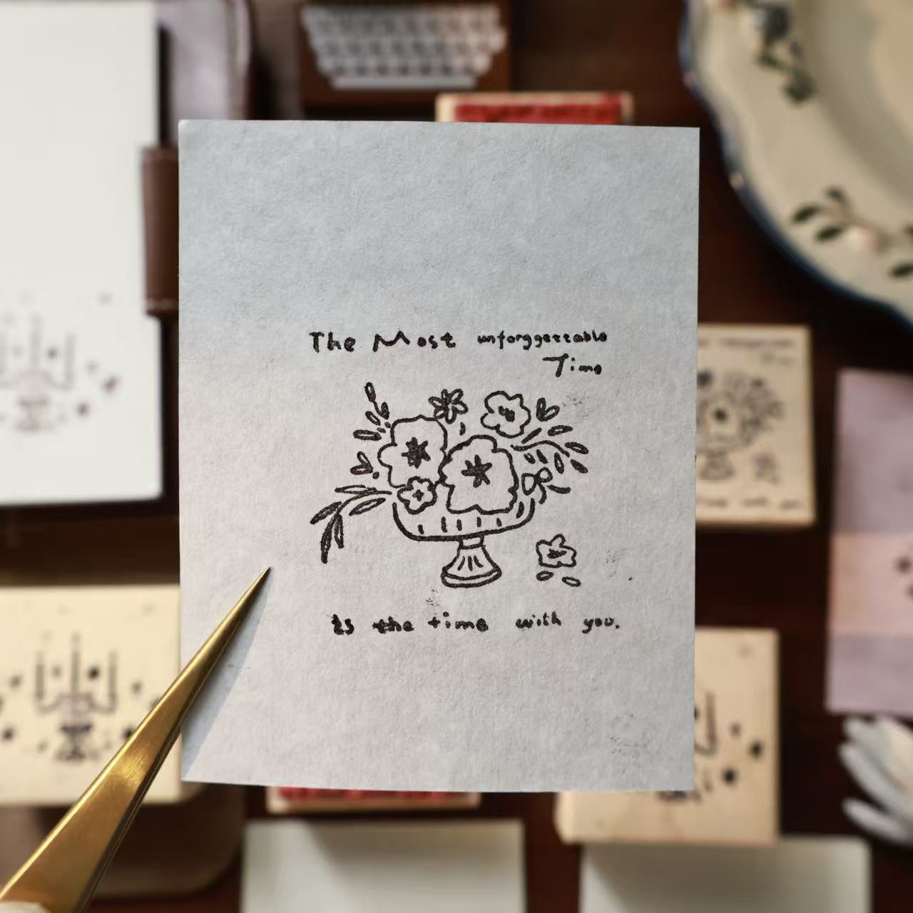Maple upgraded Candlesticks and Bouquets Stamp base Retro Wooden Notebook Rubber Stamp