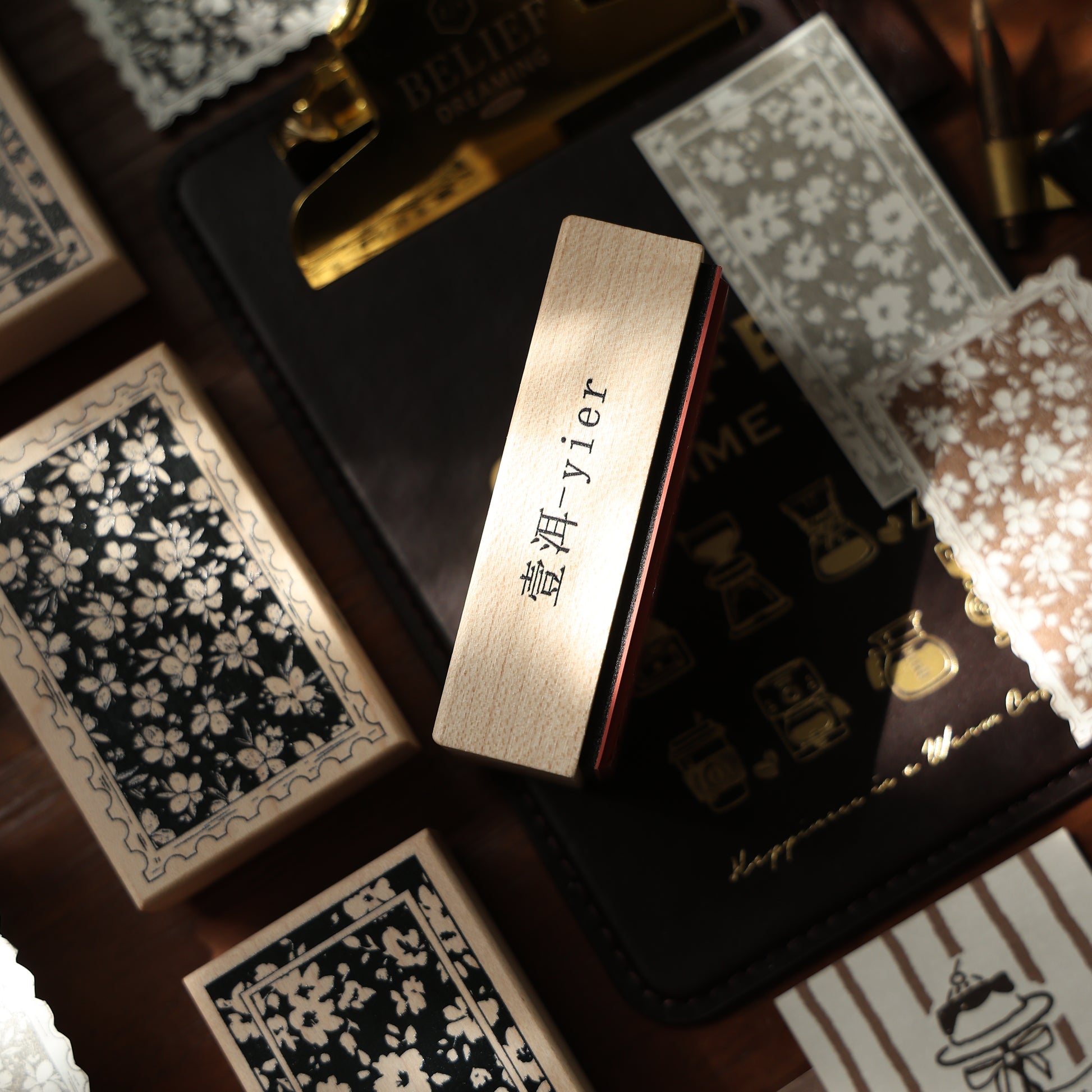 Maple upgraded Floral notepad Stamp base Retro Wooden Notebook Rubber Stamp