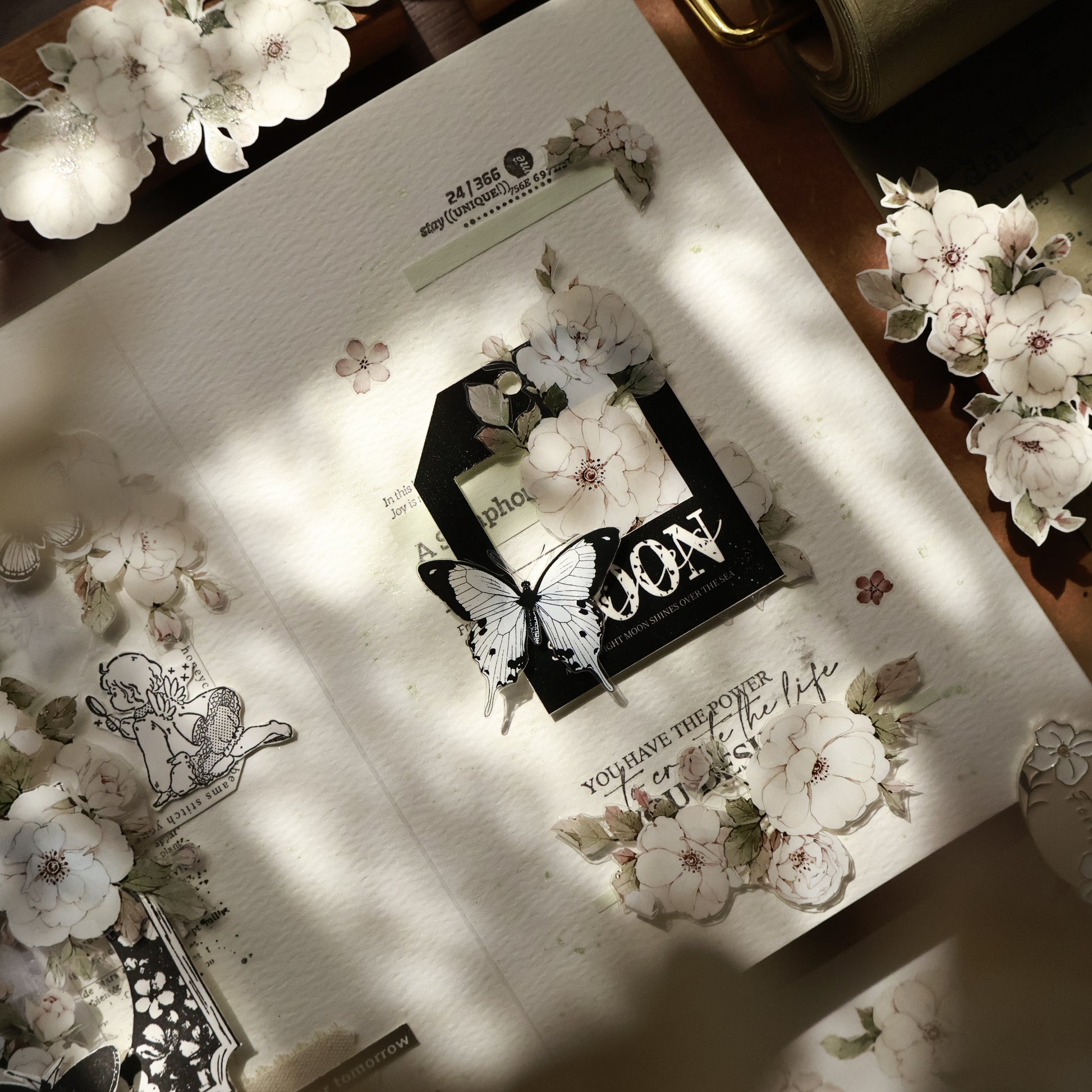 Moonlight Rose vintage flower PET and Washi tape