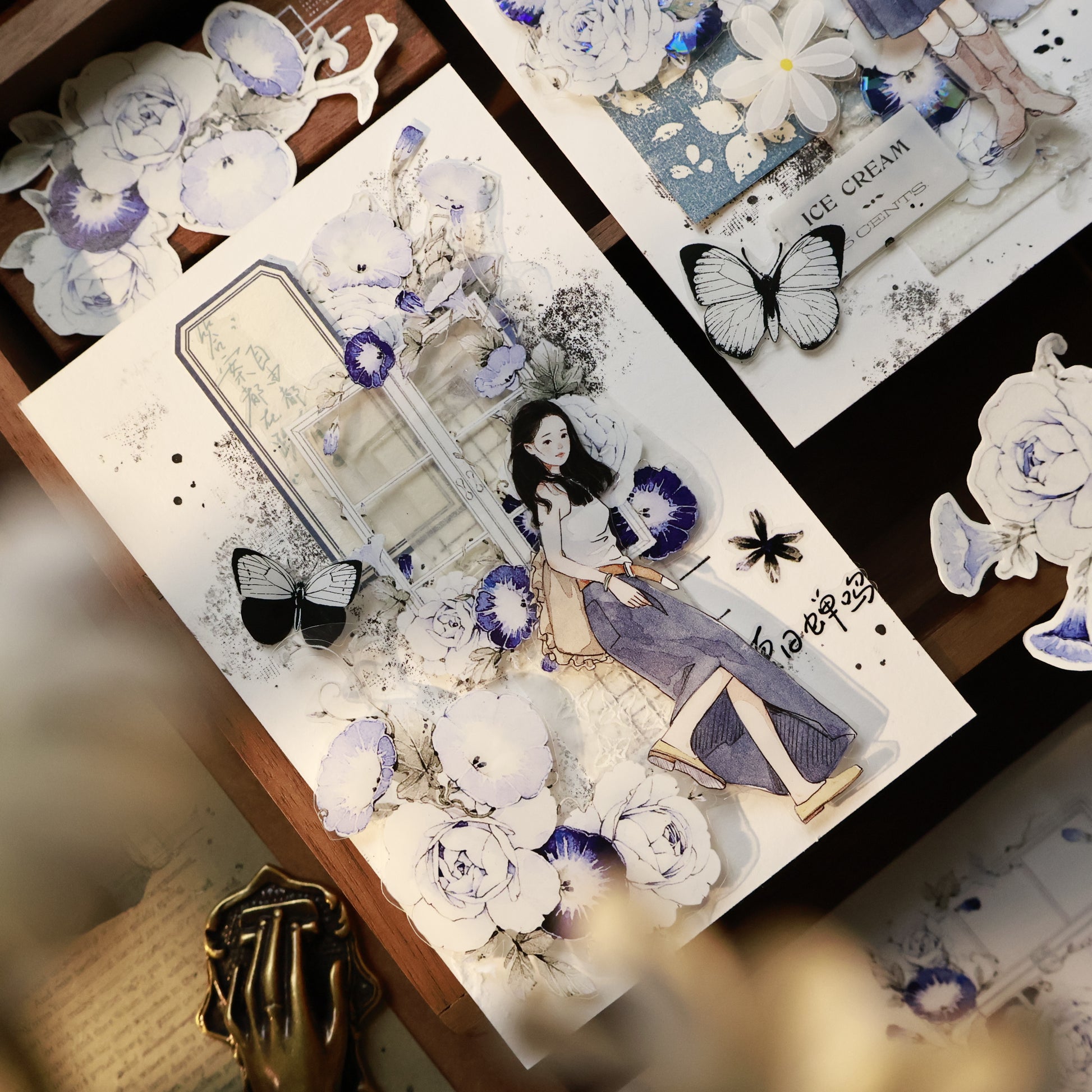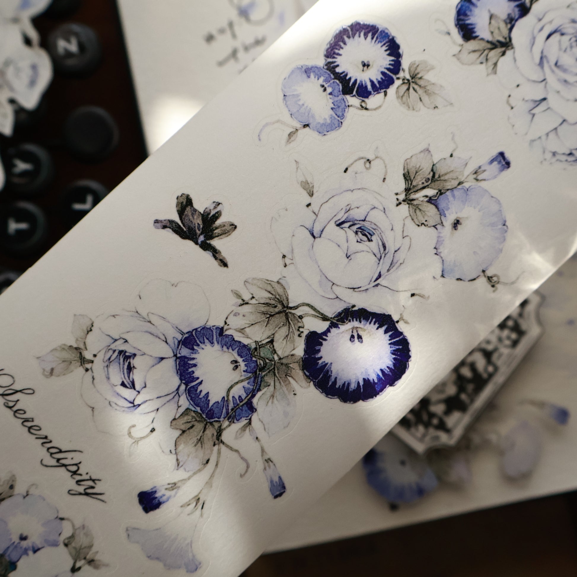 Open the window see flowers vintage flower PET and Washi tape, designed with morning glory and peony as the main element, the color is gentle, romantic and elegant, perfect for adding a touch of sophistication to all your creative projects.
