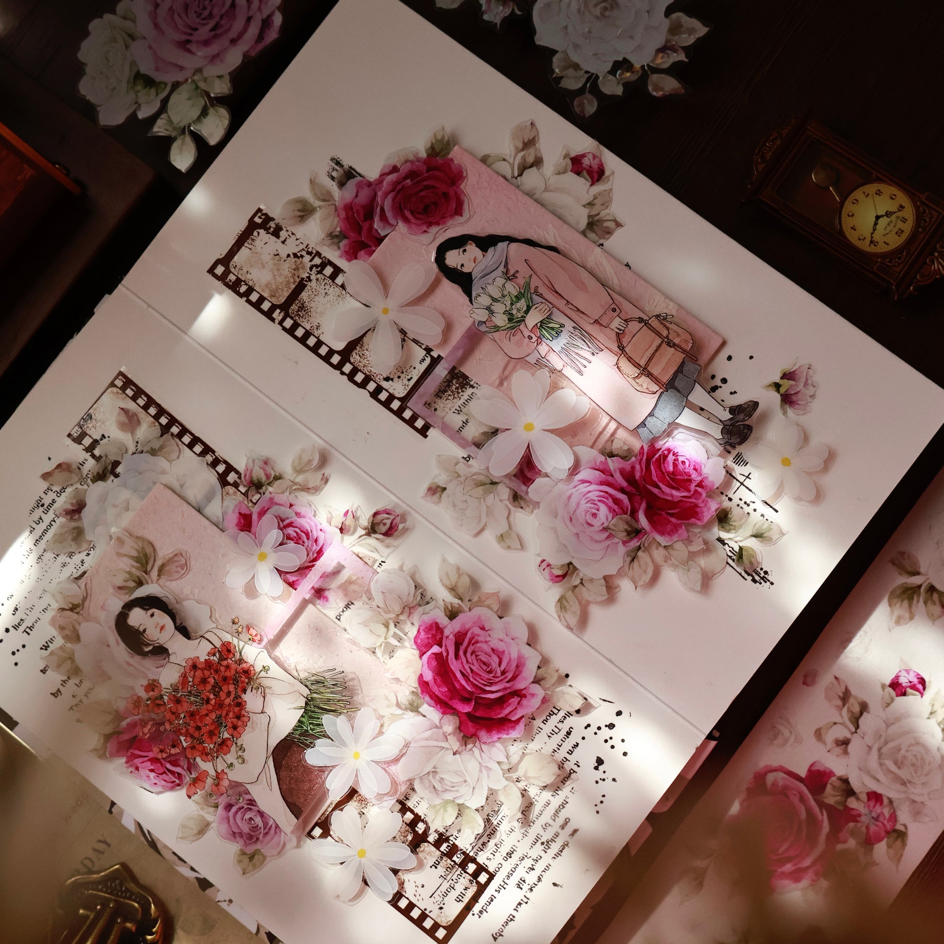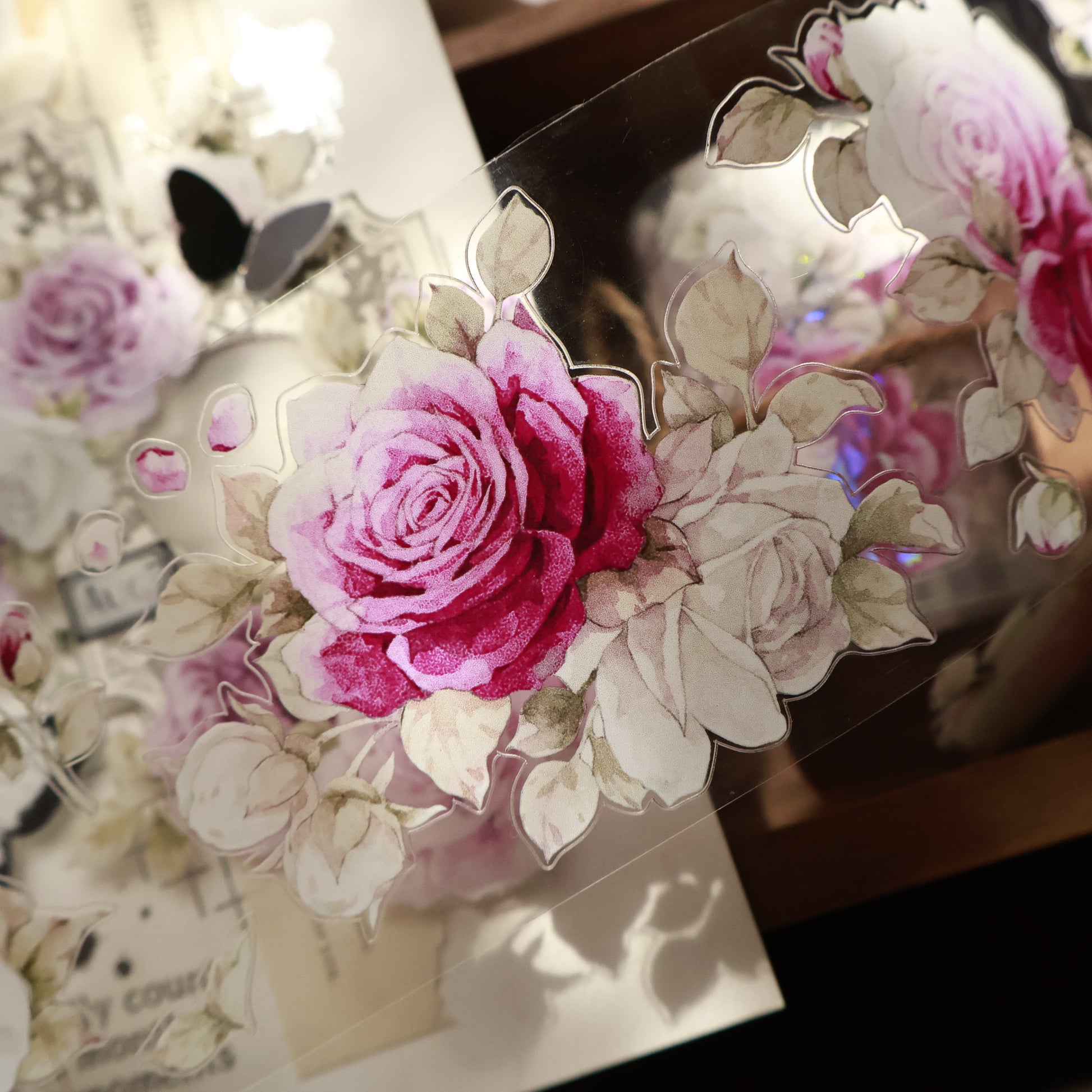Purple galaxy vintage flower PET and Washi tape, designed with purple rose as the main element, the color is gentle, romantic and elegant, perfect for adding a touch of sophistication to all your creative projects.