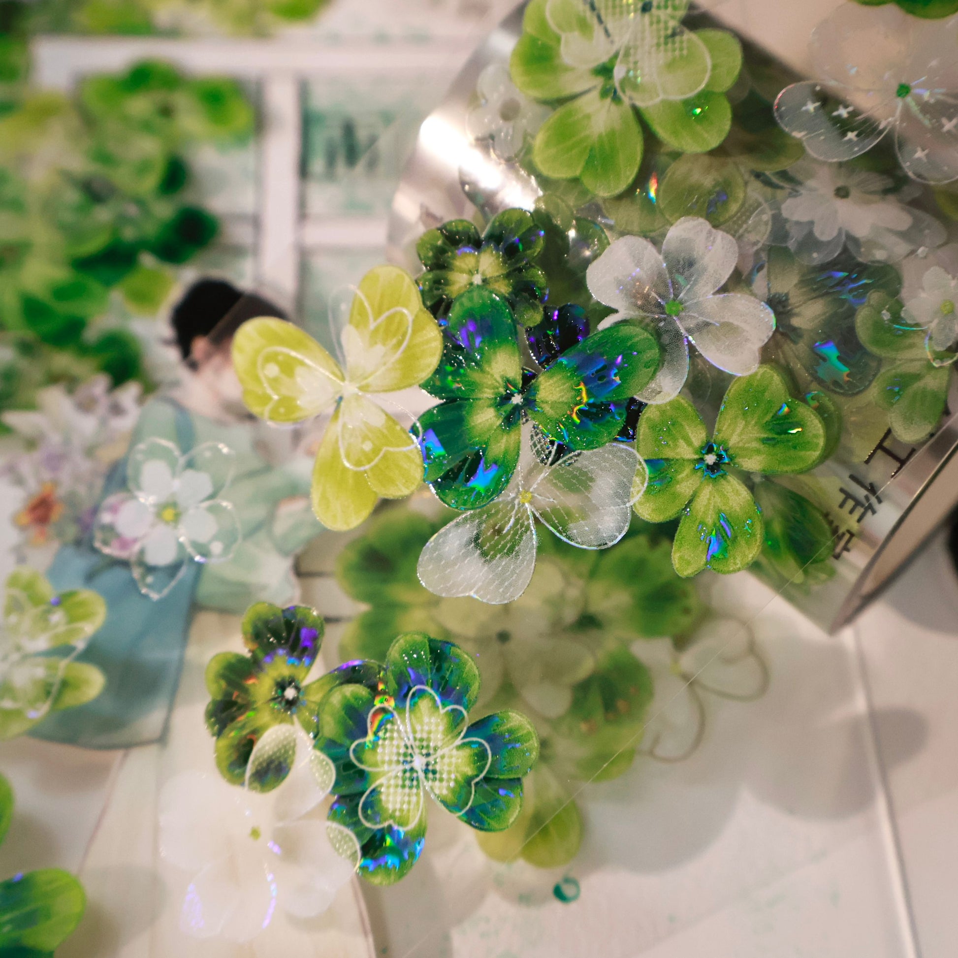 Summer in Moriyu vintage four leaf clover PET and Washi tape, designed with four leaf clover as the main element, the color is gentle, romantic and elegant, perfect for adding a touch of sophistication to all your creative projects.