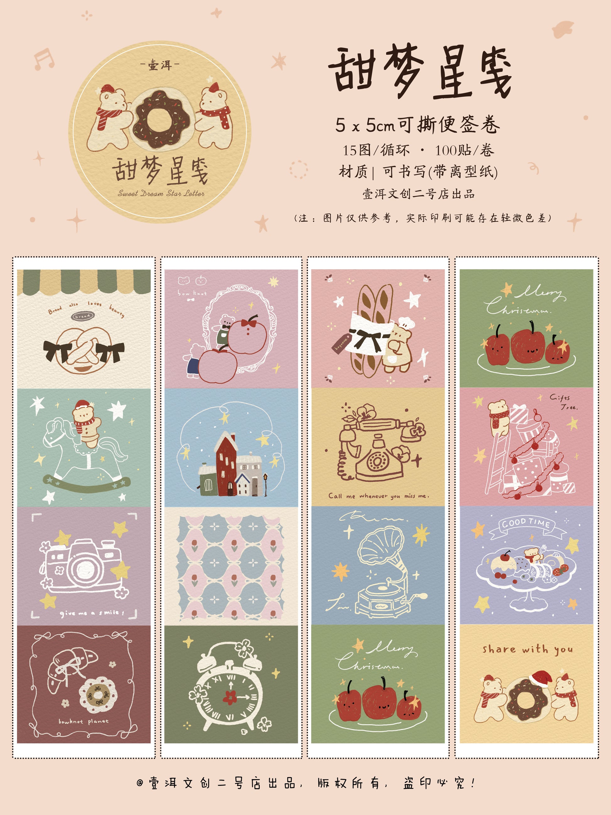 Sweet Dream Star Letter tear note roll with backing paper can be written Light retro Handbook materials