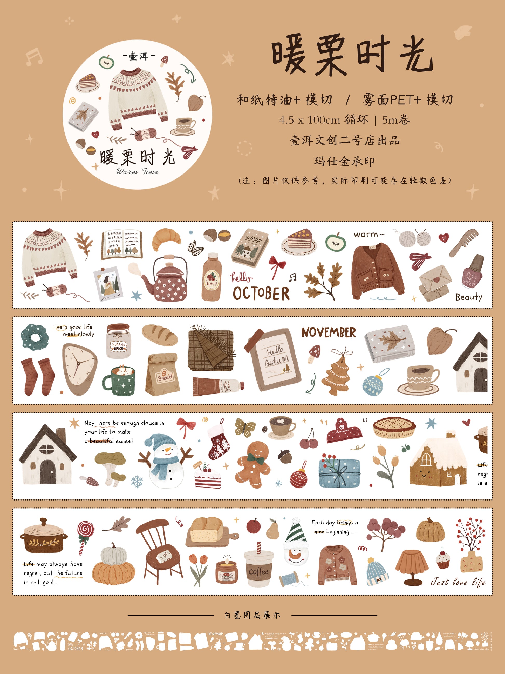 Warm Chestnut Time Collection Masking Tape | Cute PET / Washi Tape